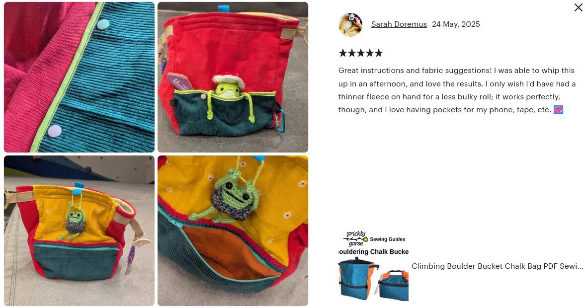 Dive into the exciting world of sewing with our comprehensive PDF guide and pattern for creating your very own climbing boulder bucket chalk bag. Plus, receive a complimentary 25-page beginner sewing guide.
