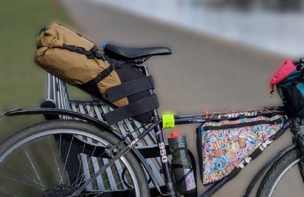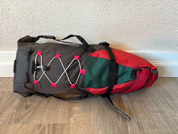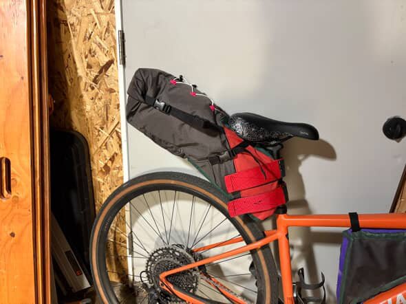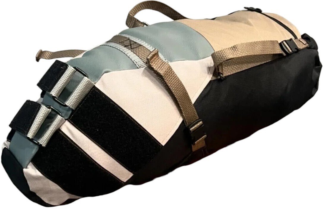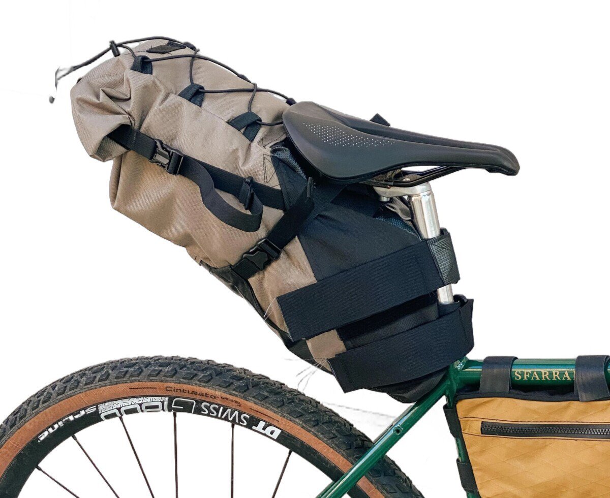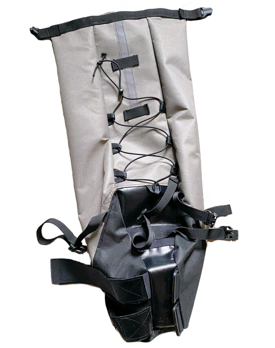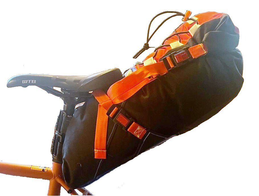 This 17L bikepacking seat pack by Prickly Gorse is designed to fit nearly all bikes that have enough tire to seat clearance. This allows easy carrying of your camp or commuting gear on bikes that cannot fit a rack.