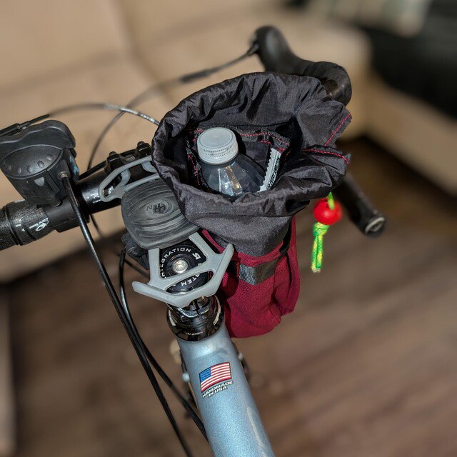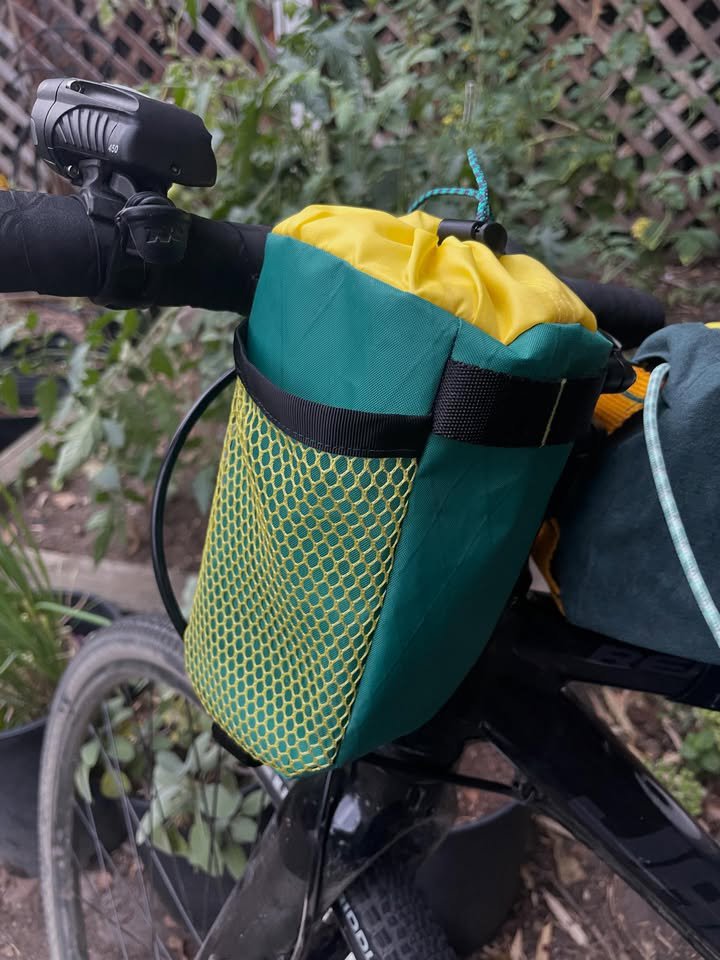 PDF pattern and full sewing guide for making your own bikepacking stem bags. Essential easy access storage for day rides and year long epic adventures. Bikepacking, bicycle touring, commuting, a bag for all occasions.